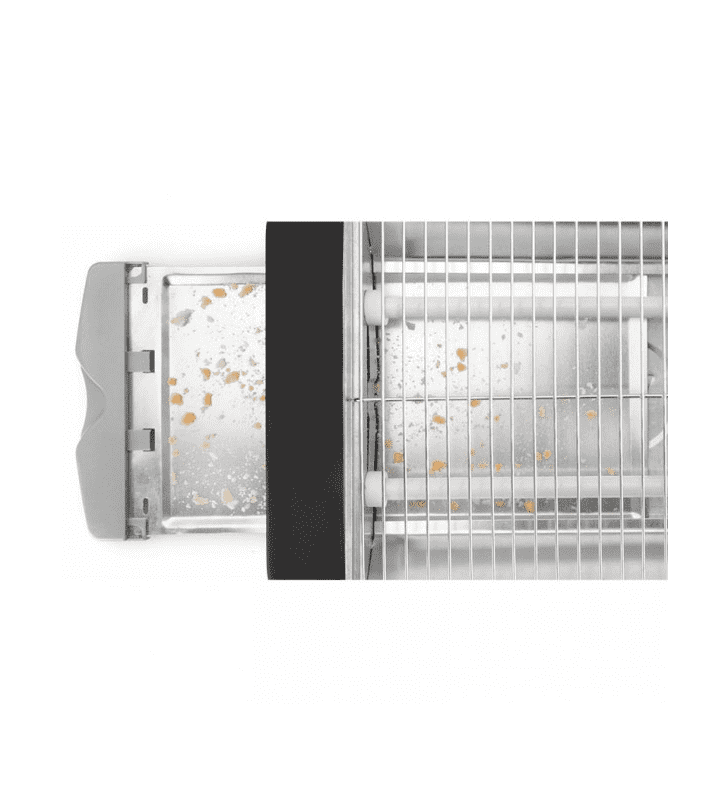 Antes de limpiar la tostadora desenchúfela y espere que enfríe. No introduzca objetos metálicos entre las barras de la parrilla. Extraiga y limpie la bandeja recogemigas después de varios usos.