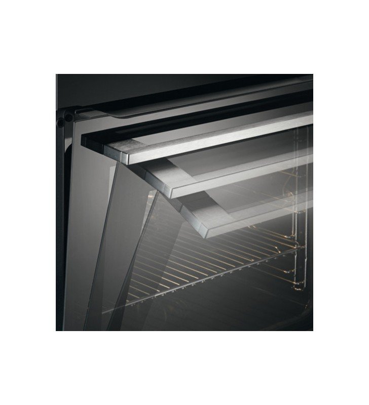 Construida en múltiples capas de cristal, la puerta de este horno permanece lo suficientemente fría como para ser segura al tacto. Además de mostrar un diseño elegante.