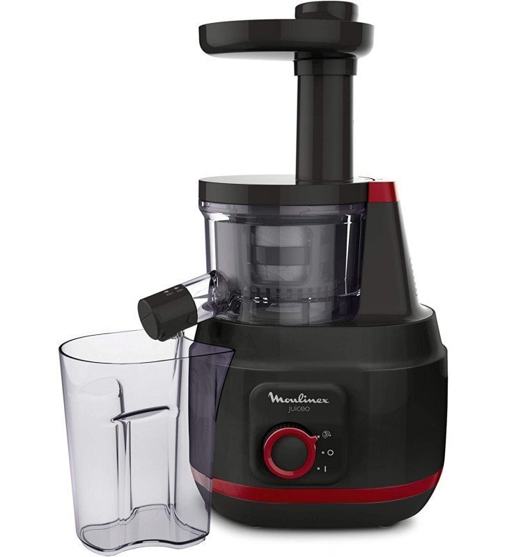 La licuadora de prensado en frío Juiceo es la solución perfecta para disfrutar de zumos sanos y deliciosos. Dispone de tecnología de prensado en frío, por lo que garantiza la máxima extracción de zumo con el mínimo desperdicio, al mismo tiempo que preserva los sabores, colores y nutrientes naturales de tus frutas y verduras preferidas. Muy fácil de usar, ya que dispone de una única velocidad, así como de función de giro inverso para desatascar los trozos de fruta y verdura bloqueados, además de una función de control de pulpa que te permite ajustar la cantidad de pulpa de tu zumo: mucha, poca, o nada de nada.