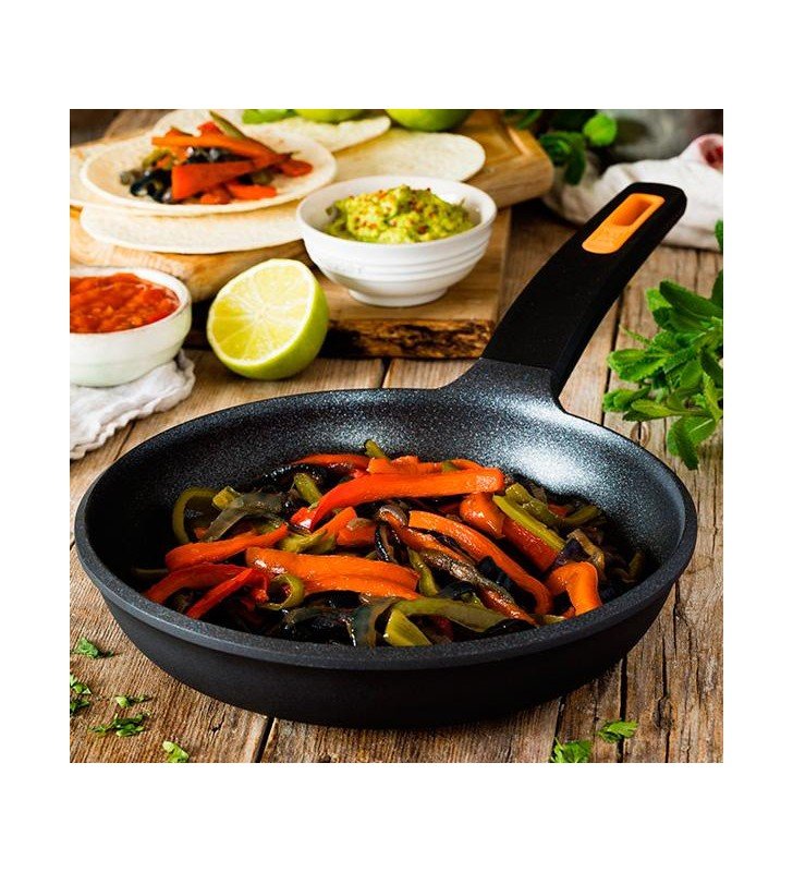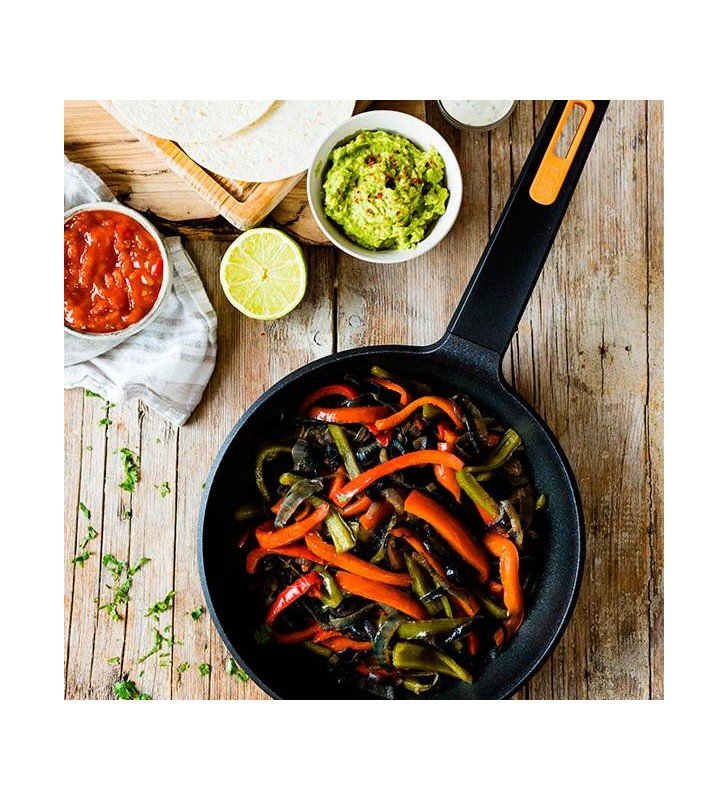 La sartén Efficient Plus reúne la mejor tecnología para conseguir unos perfectos resultados y con una extraordinaria resistencia al desgaste y al rayado. Es una sartén robusta y duradera gracias a su cuerpo fabricado en aluminio fundido y a la calidad de su antiadherente Profile, exclusivo de Bra en España, libre de PFOA.