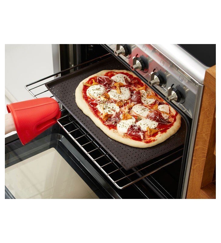 ¡Consige el acabado crujiente que siempre has querido para tus pizzas!, ¡el secreto está en la cocción!. El Pizza Mat, gracias a su microperforado consigue un enfriado uniforme, evitando que se reblandezca, y permitiendo que en toda la masa se cree una costra crujiente.