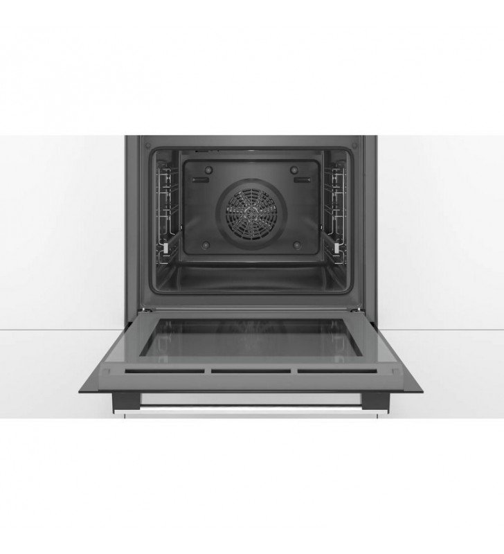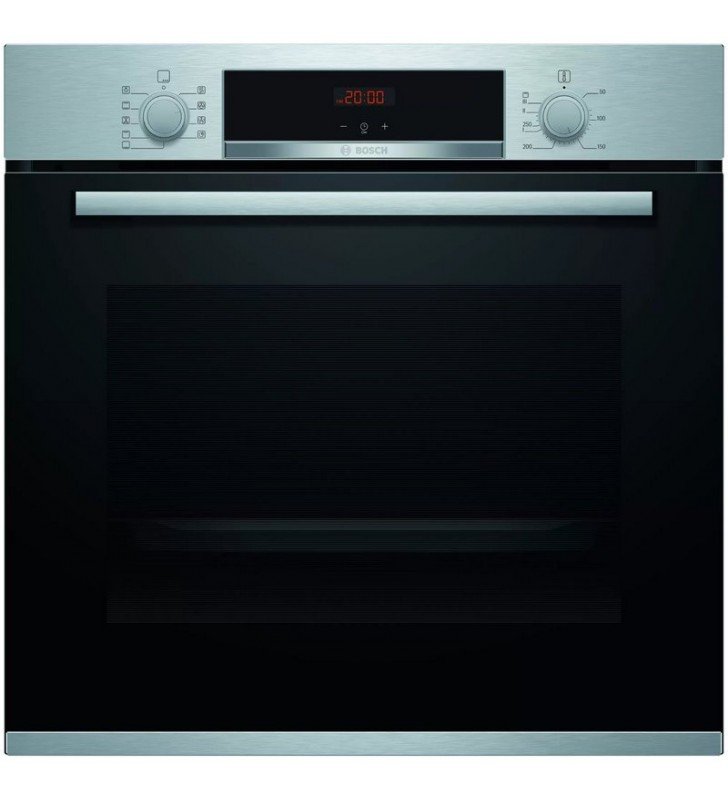 Bosch HBA5740S0 Horno, Multifunción, A, Encastrable, 60 cm., 71 l., 7 F, Pirólisis, Abatible, Cristal negro/inox, Display LED