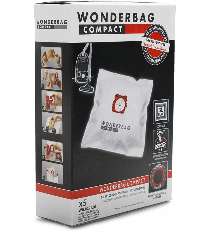 Gracias a su adaptador UNIVERSAL patentado, WONDERBAG se instale en la mayoría de los aspiradores con una capacidad de 3L máx.